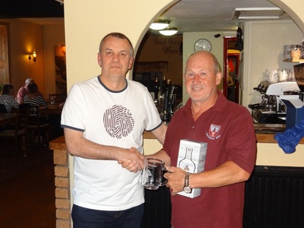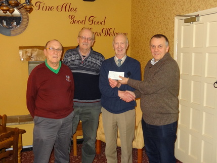 Chairman Jim Balderson Presents a Cheque £2521. too Trevor Cherry of Lincs. & Notts Air Ambulance.
